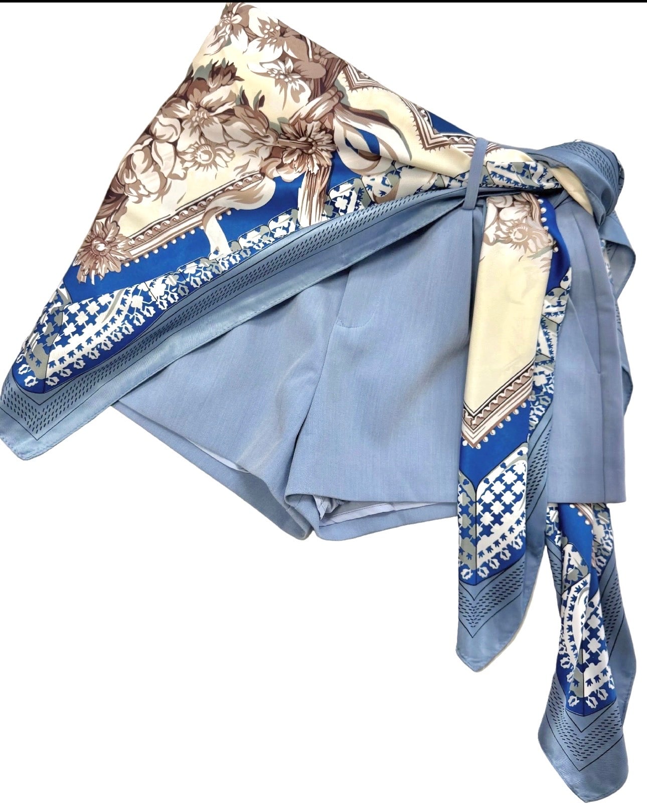 Quality short with matching fabric belt. (Scarf sold separately!)