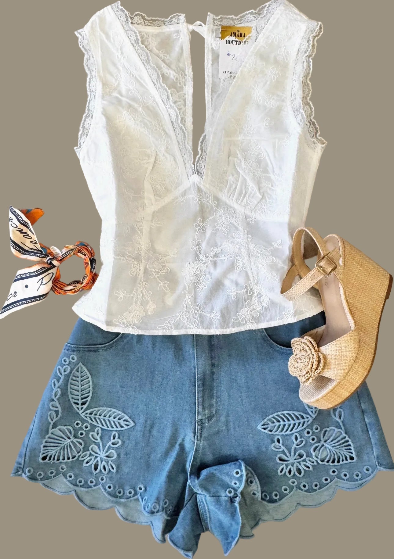 Cute lace cut out design shorts. Added stretch for a perfect fit.