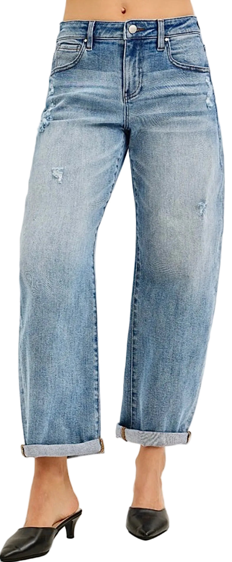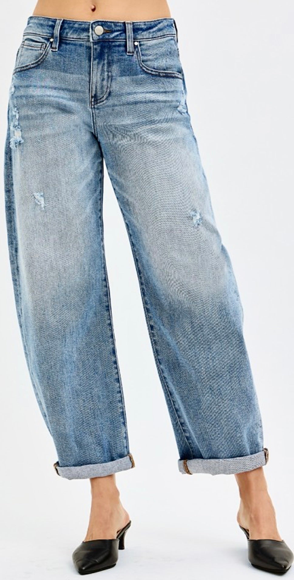 SLOUCHY ANKLE LENGTH BARREL JEANS WITH CUFFS Rise 10 1/2' | Inseam 26 1/2 (After...