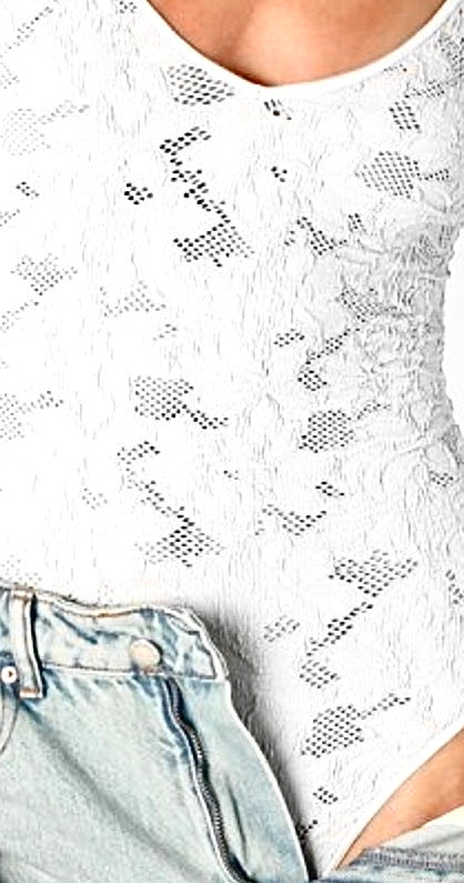 Lace textured V-neck bodysuit made of our famous 4 way stretch fabric. Premium quality. Made...