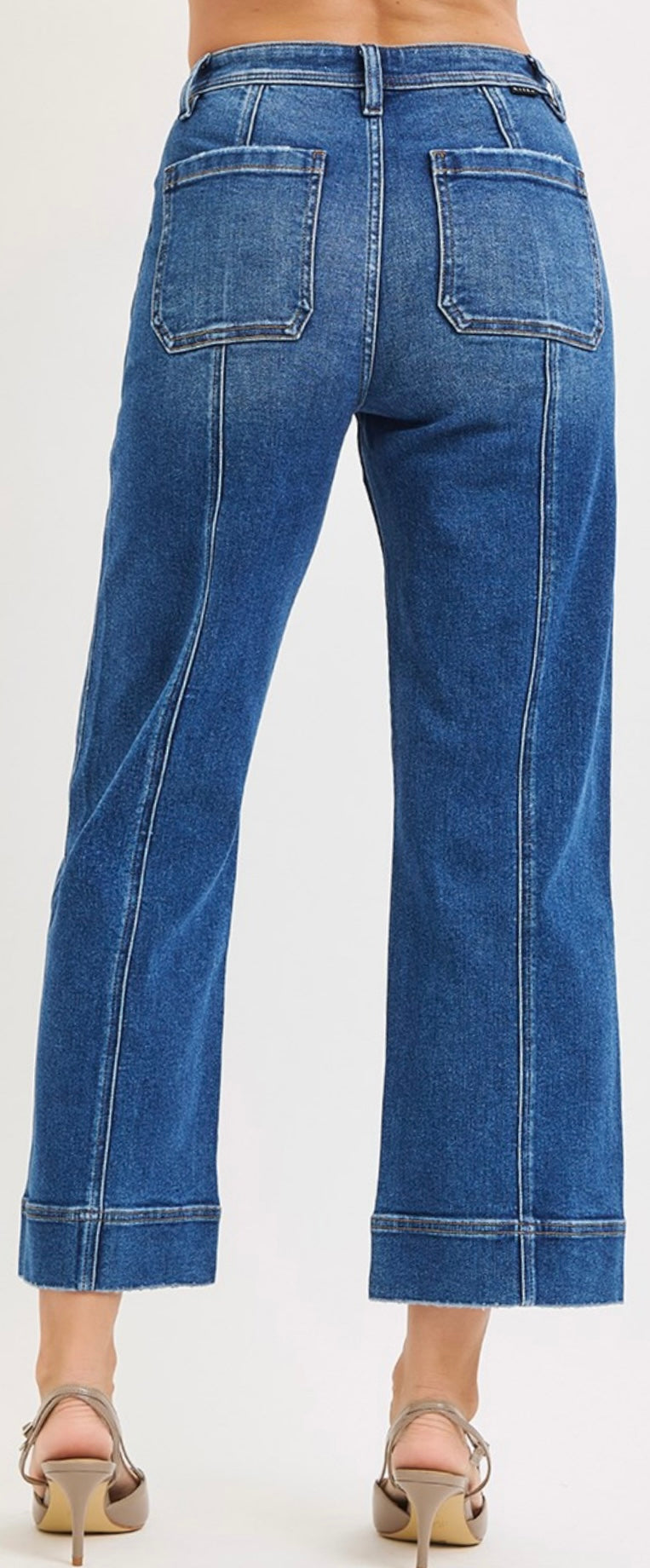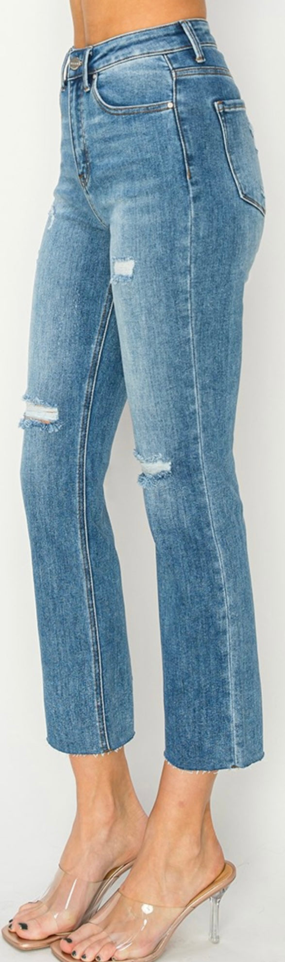 Classic 5 pocket mid rise straight leg denim. Added stretch for comfort.