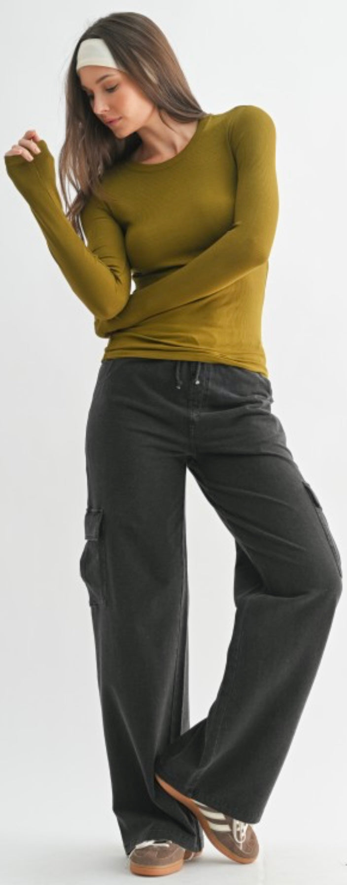 Incredible four-way stretch patterned embossed long sleeved top. Double lined bra top. One size fits...