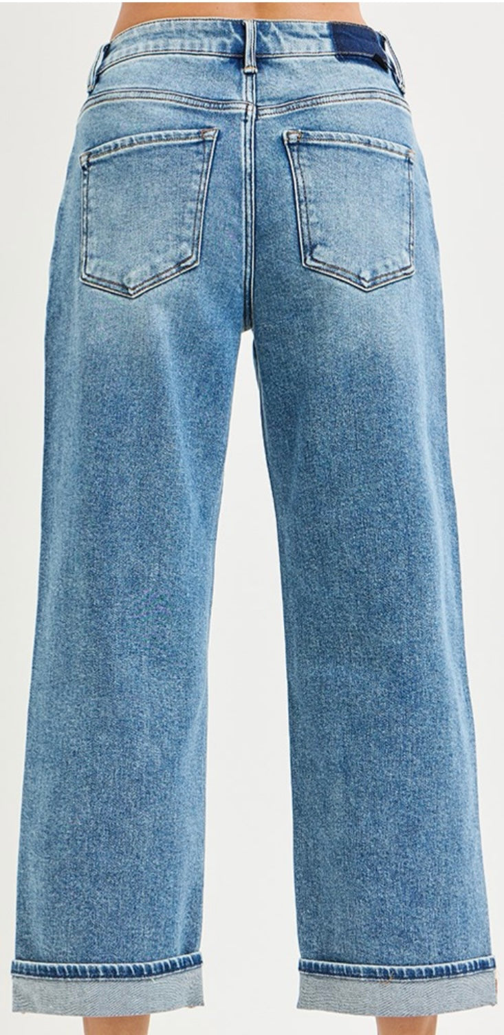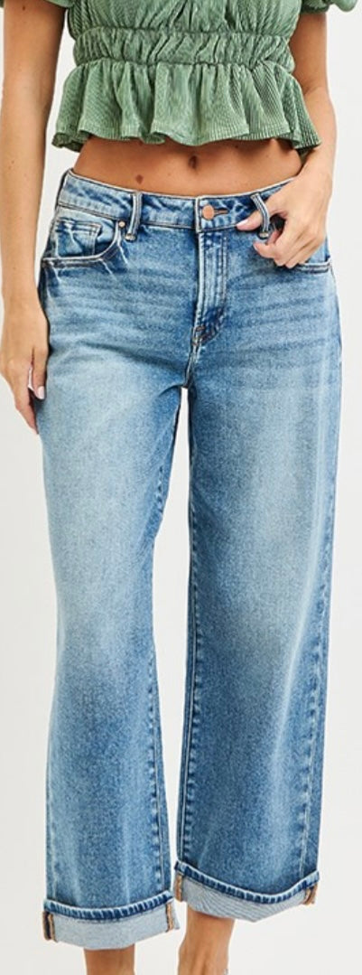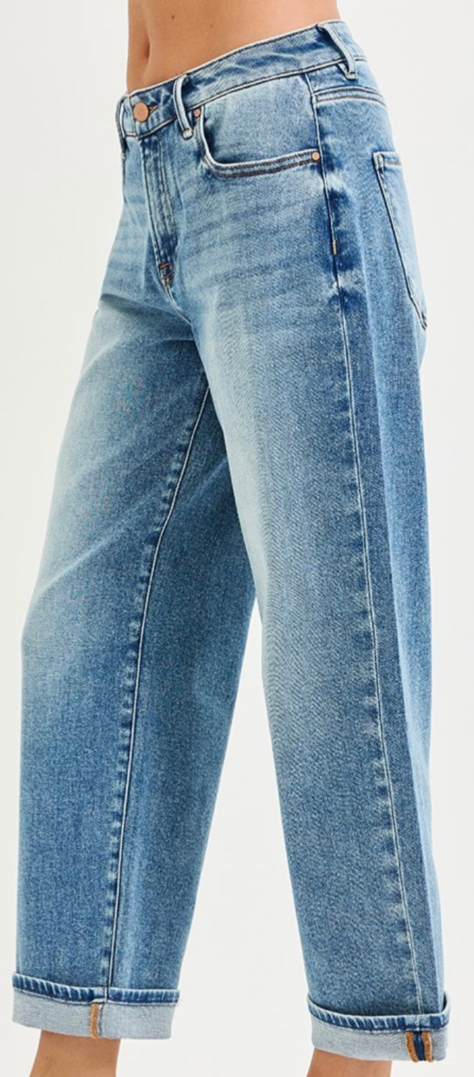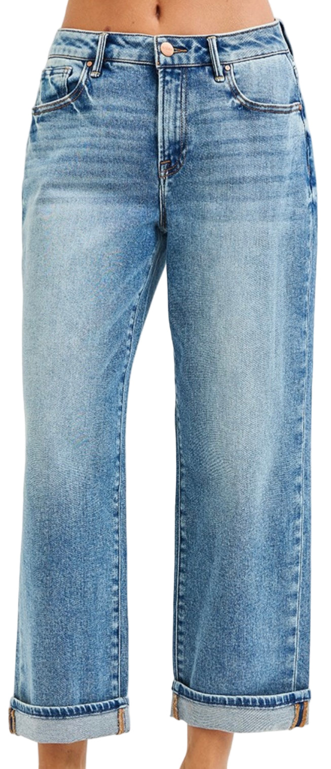 Mid-rise relaxed boyfriend denim has added stretch for comfortable fit!